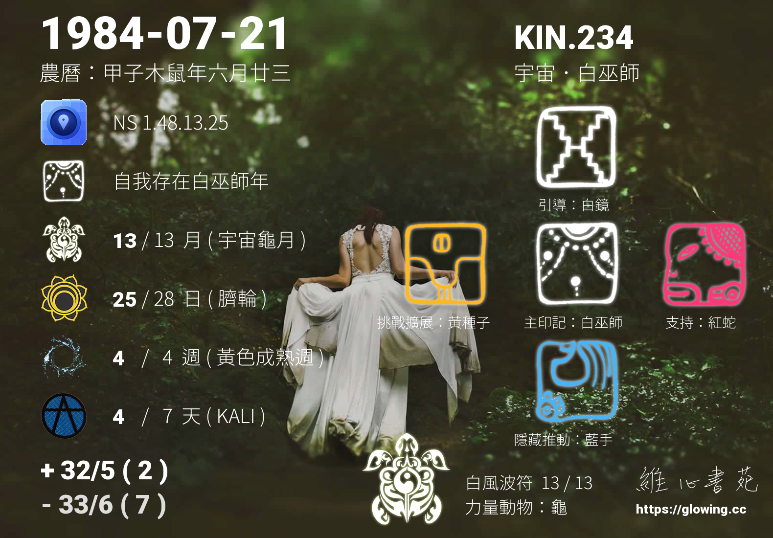 KIN.234 位於 白風波符 13 天中的第 13 天,銀河音階為調性 13