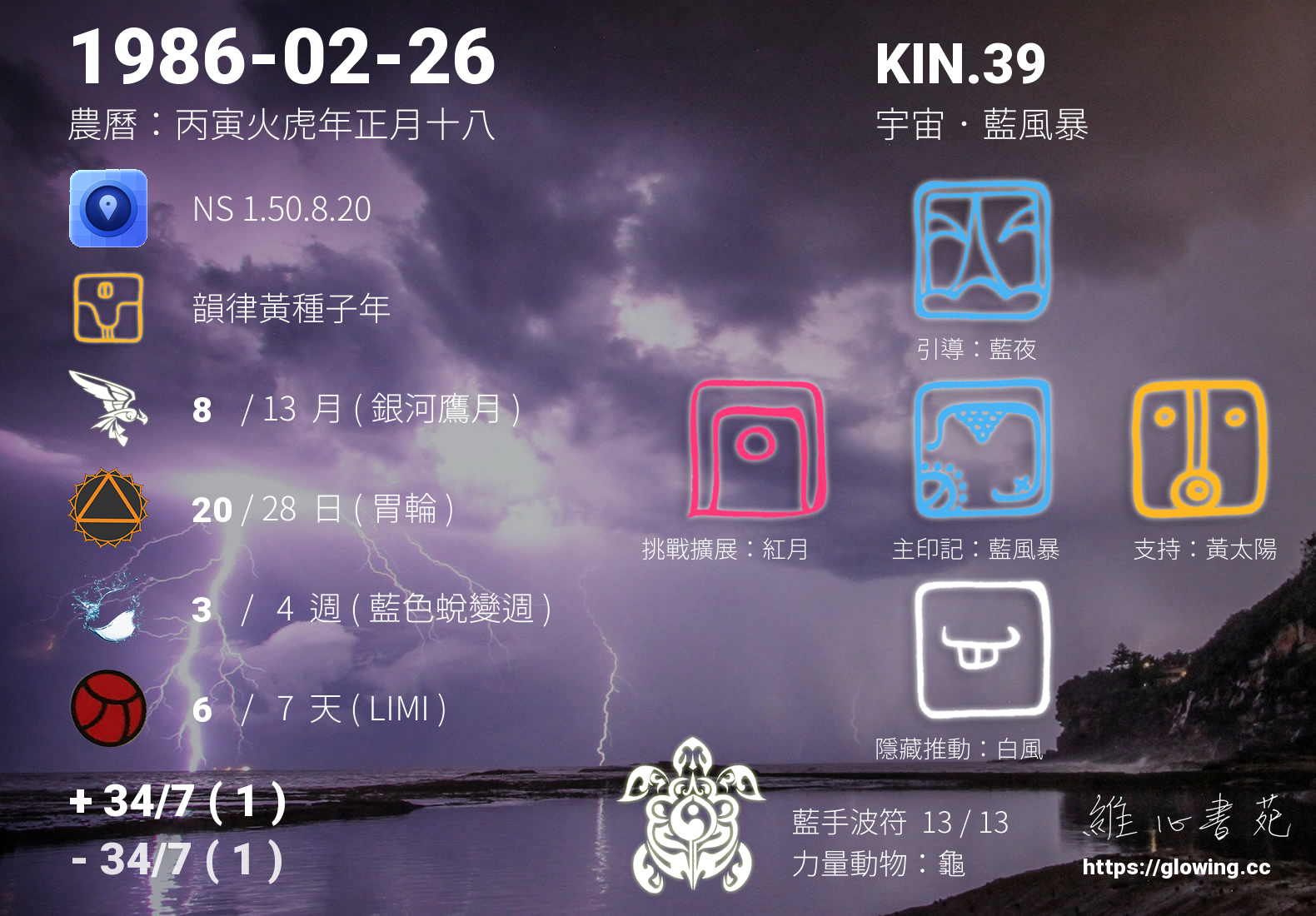 | 後天數/主命數 | 34/7(1) |