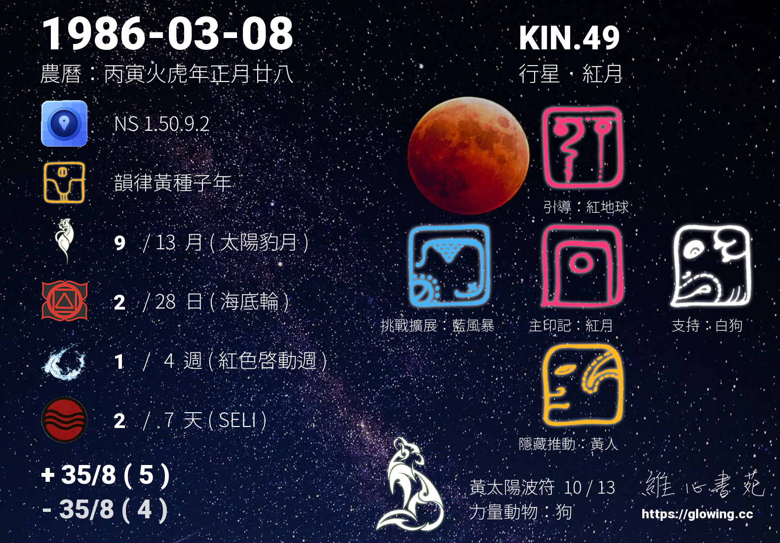 我們可以稱 KIN 49 為 【行星紅月】 、 【行星的紅月】 、 【黃太陽波符 之 行星紅月】 也可以是 【行星紅月.黃太陽波符】 ,你比較喜歡哪一個稱號呢?