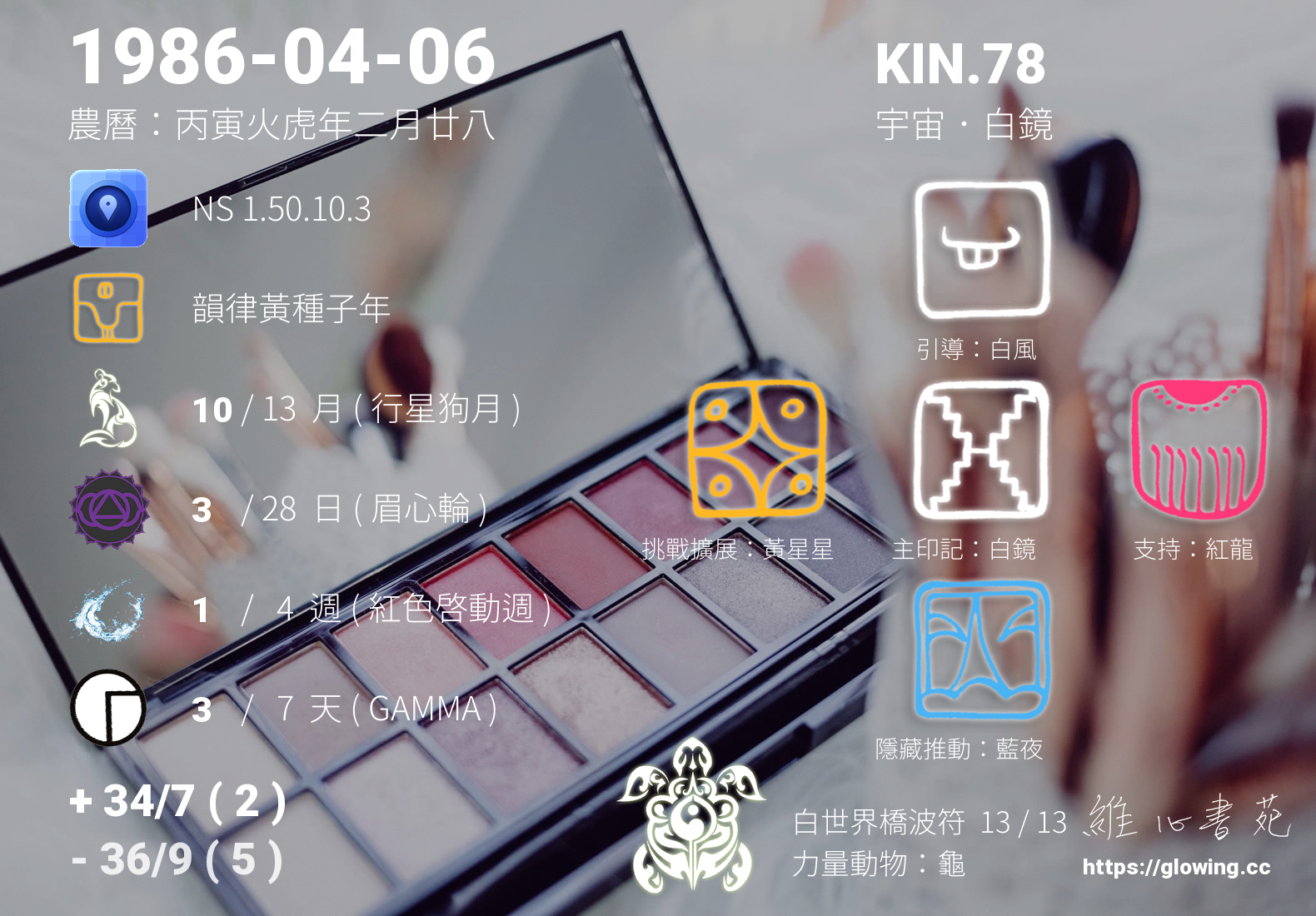 我們可以稱 KIN 78 為 【宇宙白鏡】 、 【宇宙的白鏡】 、 【白世界橋波符 之 宇宙白鏡】 也可以是 【宇宙白鏡.白世界橋波符】 ,你比較喜歡哪一個稱號呢?