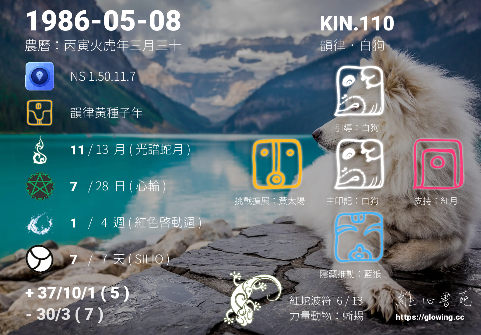 今天的星際原型圖騰為白狗,我們稱之為主印記, 白狗的主題是愛與忠誠,總是給人一種全然付出不求回報的感受,然而請千萬記得唯有先愛自己才能給予他人全然的愛是永恆的真理。
