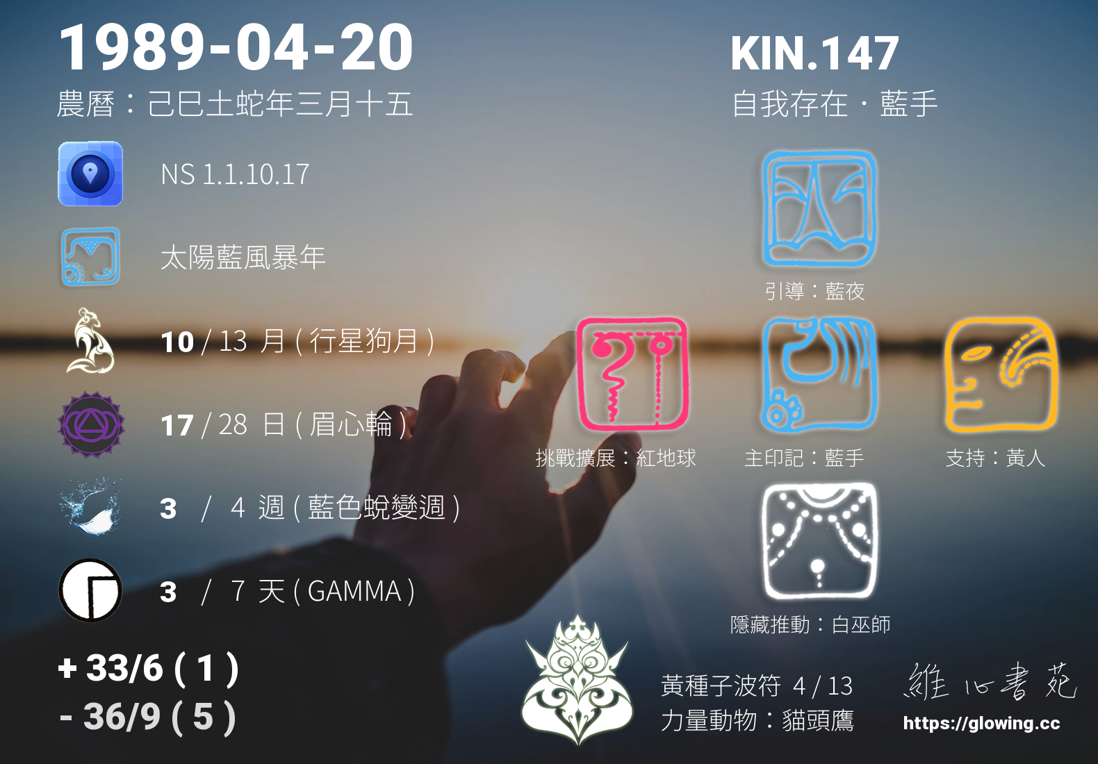 - PSI(行星記憶資料庫):KIN.199 自我存在 藍風暴