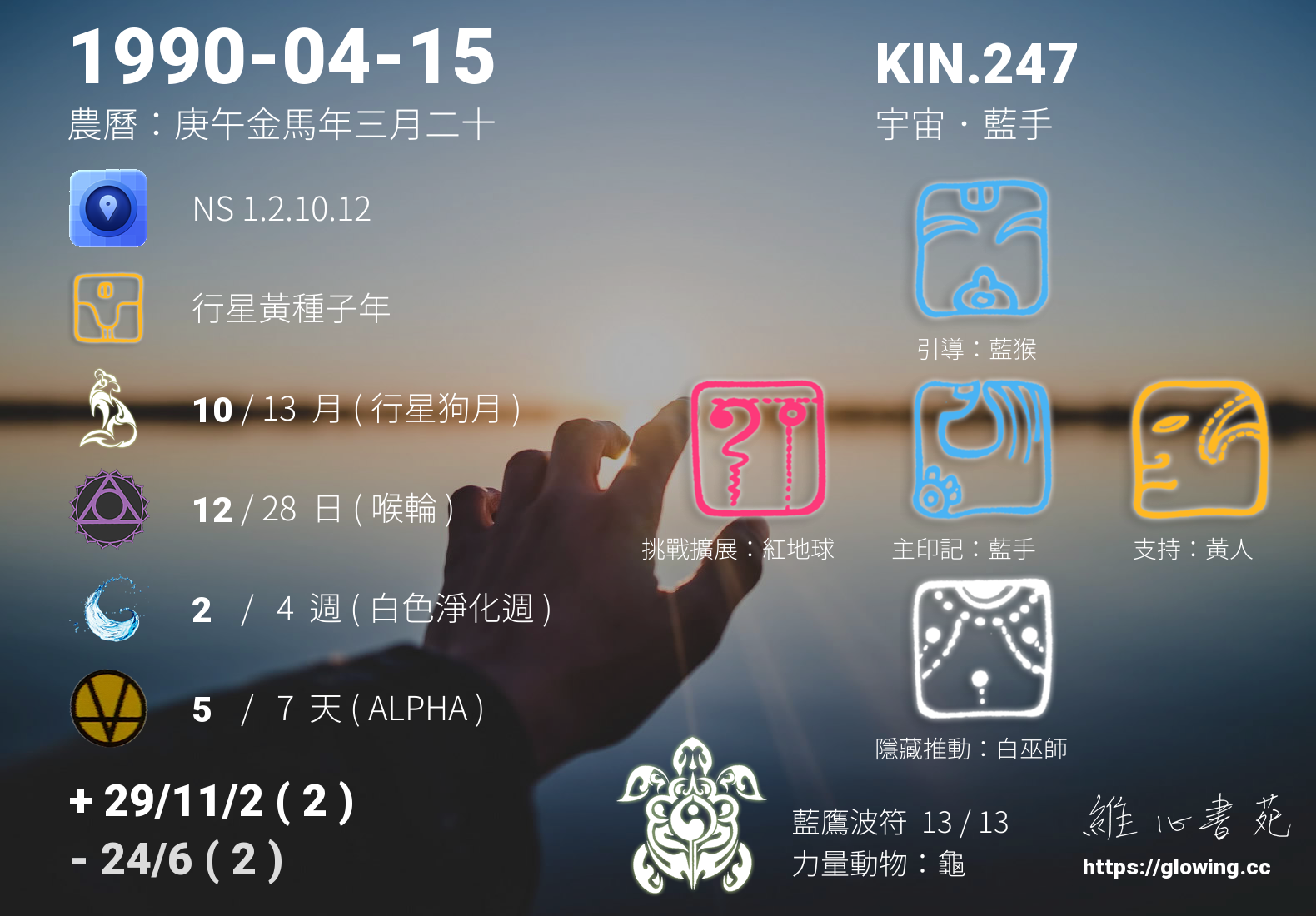 我們可以稱 KIN 247 為 【宇宙藍手】 、 【宇宙的藍手】 、 【藍鷹波符 之 宇宙藍手】 也可以是 【宇宙藍手.藍鷹波符】 ,你比較喜歡哪一個稱號呢?