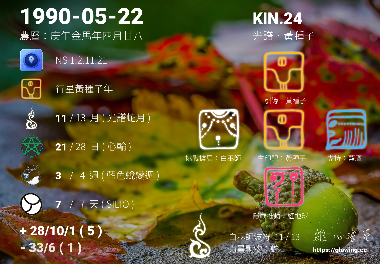 我們可以稱 KIN 24 為 【光譜黃種子】 、 【光譜的黃種子】 、 【白巫師波符 之 光譜黃種子】 也可以是 【光譜黃種子.白巫師波符】 ,你比較喜歡哪一個稱號呢?