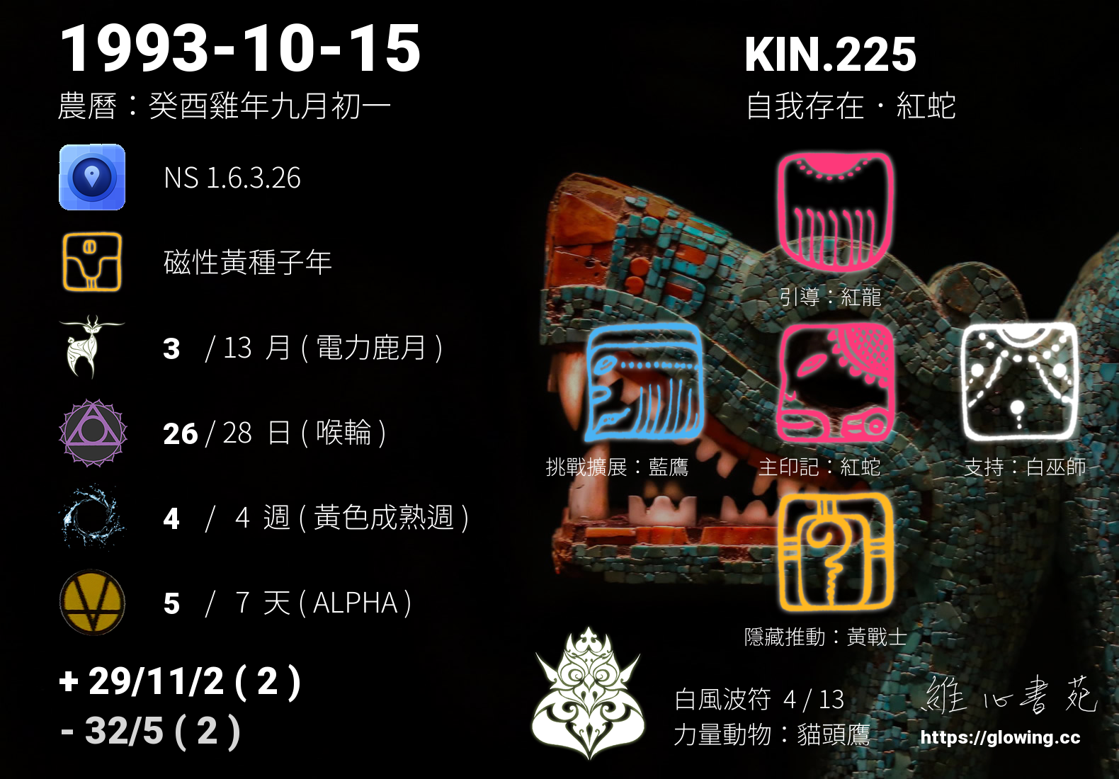 KIN.225 位於 白風波符 13 天中的第 4 天,銀河音階為調性 4