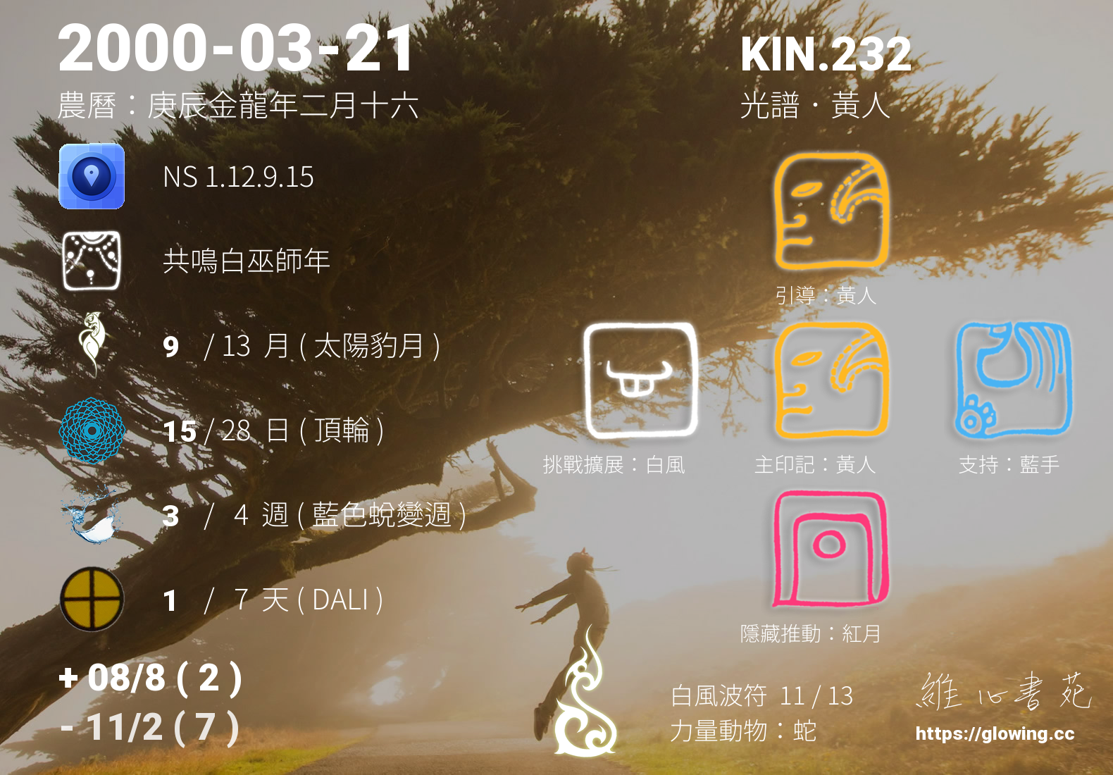 KIN.232 位於 白風波符 13 天中的第 11 天,銀河音階為調性 11