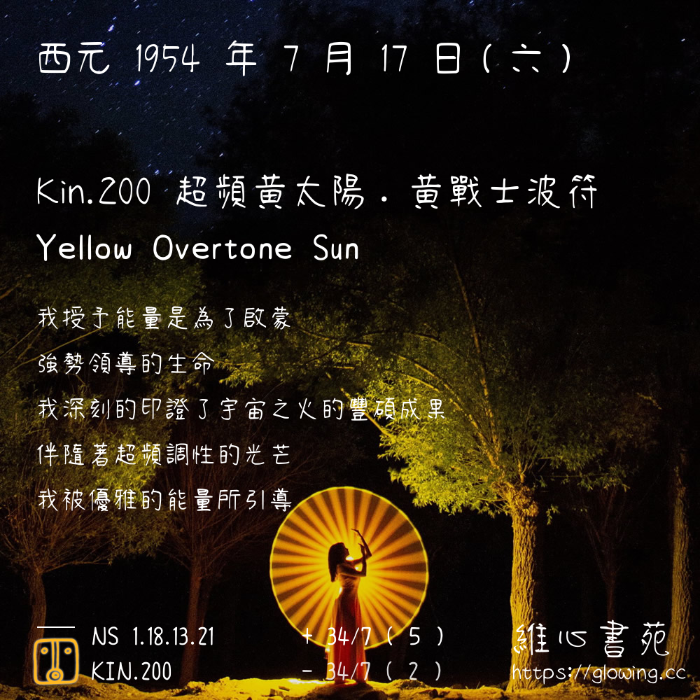 我們可以稱 KIN 200 為 【超頻黃太陽】 、 【超頻的黃太陽】 、 【黃戰士波符 之 超頻黃太陽】 也可以是 【超頻黃太陽.黃戰士波符】 ,你比較喜歡哪一個稱號呢?