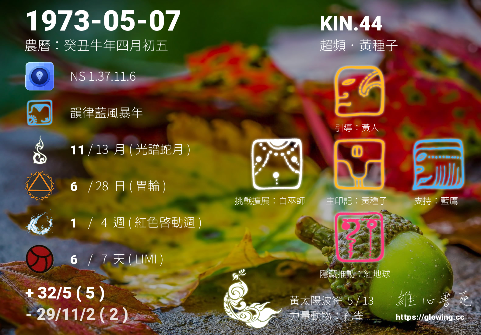 我們可以稱 KIN 44 為 【超頻黃種子】 、 【超頻的黃種子】 、 【黃太陽波符 之 超頻黃種子】 也可以是 【超頻黃種子.黃太陽波符】 ,你比較喜歡哪一個稱號呢?