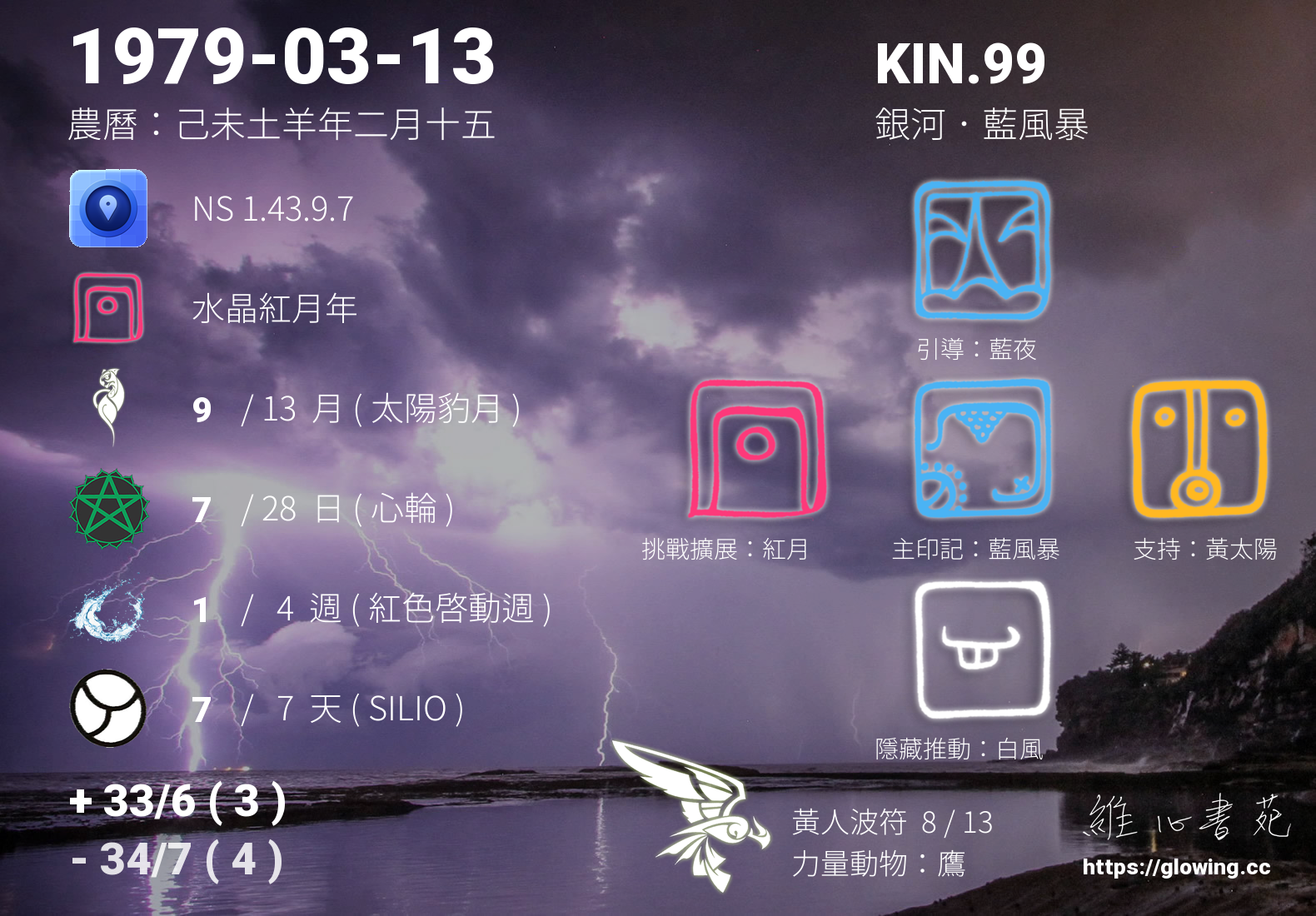 我們可以稱 KIN 99 為 【銀河藍風暴】 、 【銀河的藍風暴】 、 【黃人波符 之 銀河藍風暴】 也可以是 【銀河藍風暴.黃人波符】 ,你比較喜歡哪一個稱號呢?