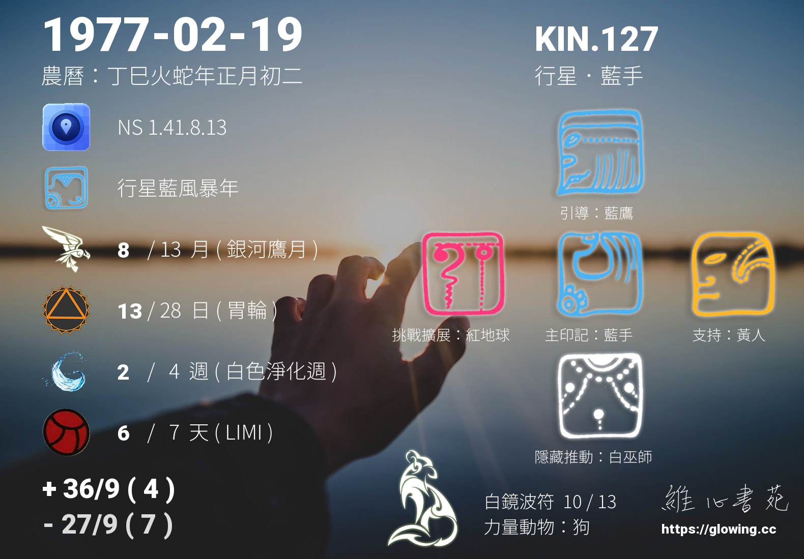 我們可以稱 KIN 127 為 【行星藍手】 、 【行星的藍手】 、 【白鏡波符 之 行星藍手】 也可以是 【行星藍手.白鏡波符】 ,你比較喜歡哪一個稱號呢?