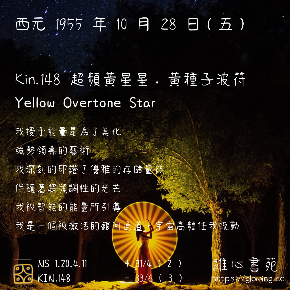 我們可以稱 KIN 148 為 【超頻黃星星】 、 【超頻的黃星星】 、 【黃種子波符 之 超頻黃星星】 也可以是 【超頻黃星星.黃種子波符】 ,你比較喜歡哪一個稱號呢?