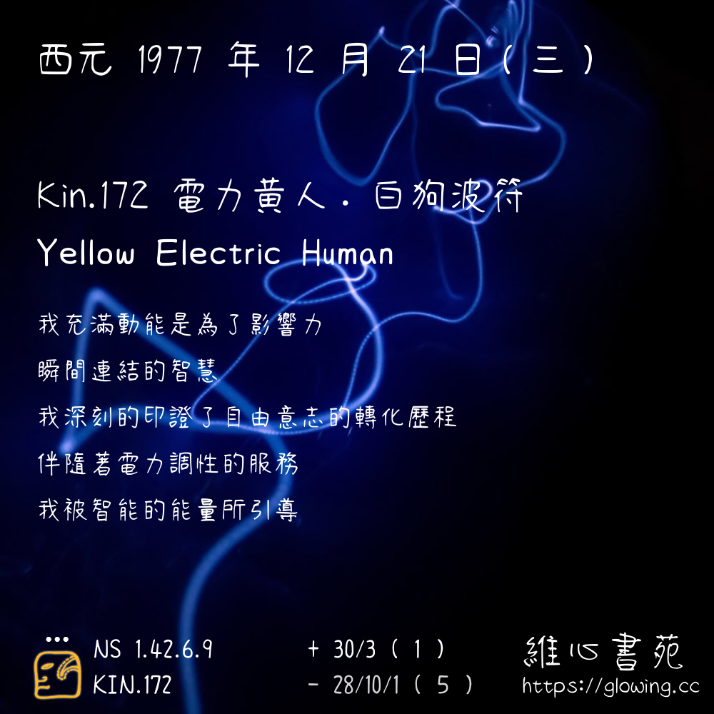 我們可以稱 KIN 172 為 【電力黃人】 、 【電力的黃人】 、 【白狗波符 之 電力黃人】 也可以是 【電力黃人.白狗波符】 ,你比較喜歡哪一個稱號呢?