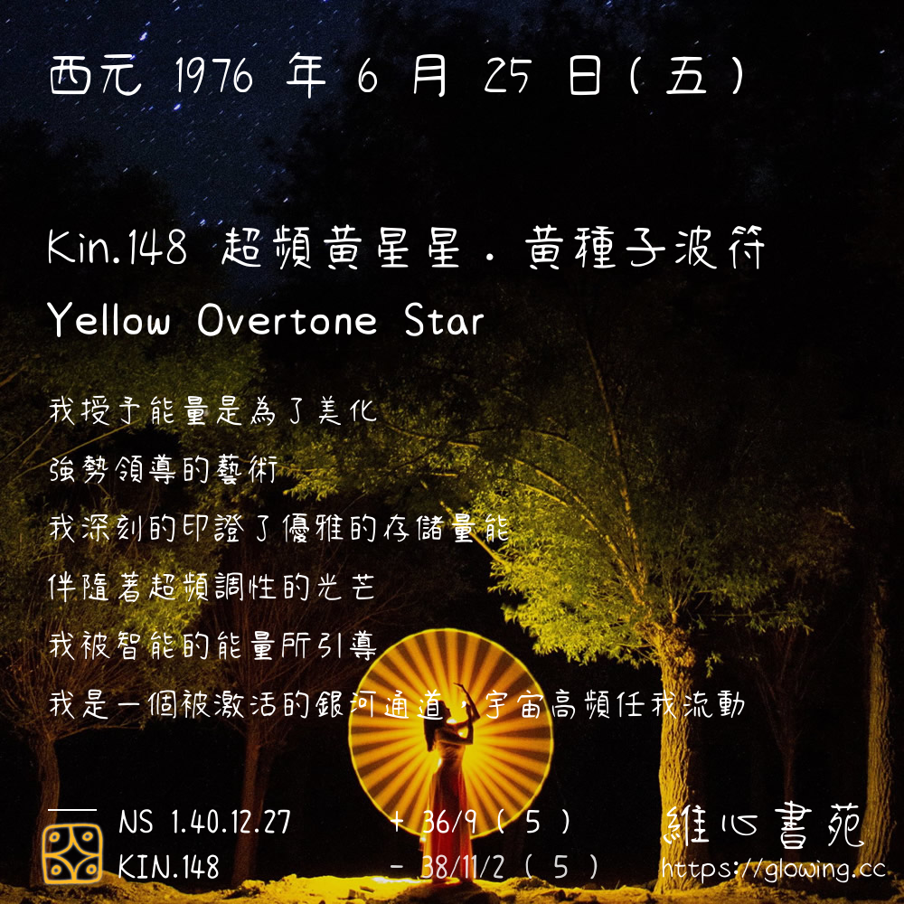 我們可以稱 KIN 148 為 【超頻黃星星】 、 【超頻的黃星星】 、 【黃種子波符 之 超頻黃星星】 也可以是 【超頻黃星星.黃種子波符】 ,你比較喜歡哪一個稱號呢?