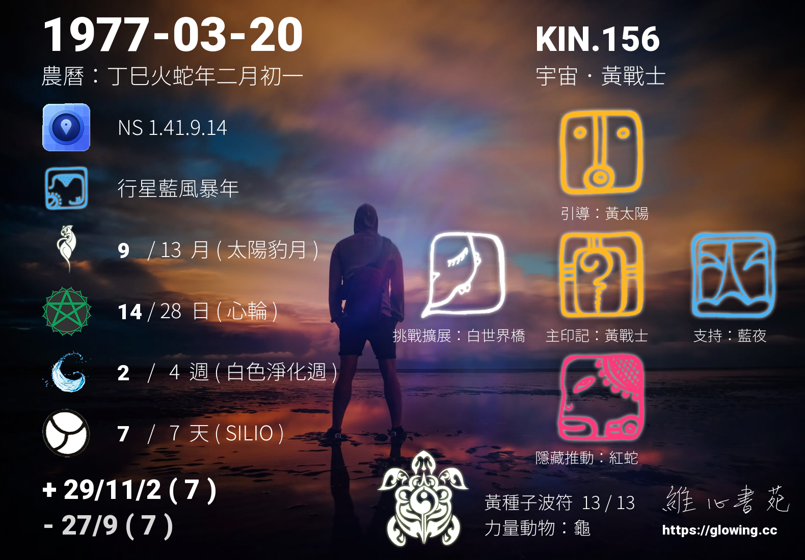 我們可以稱 KIN 156 為 【宇宙黃戰士】 、 【宇宙的黃戰士】 、 【黃種子波符 之 宇宙黃戰士】 也可以是 【宇宙黃戰士.黃種子波符】 ,你比較喜歡哪一個稱號呢?