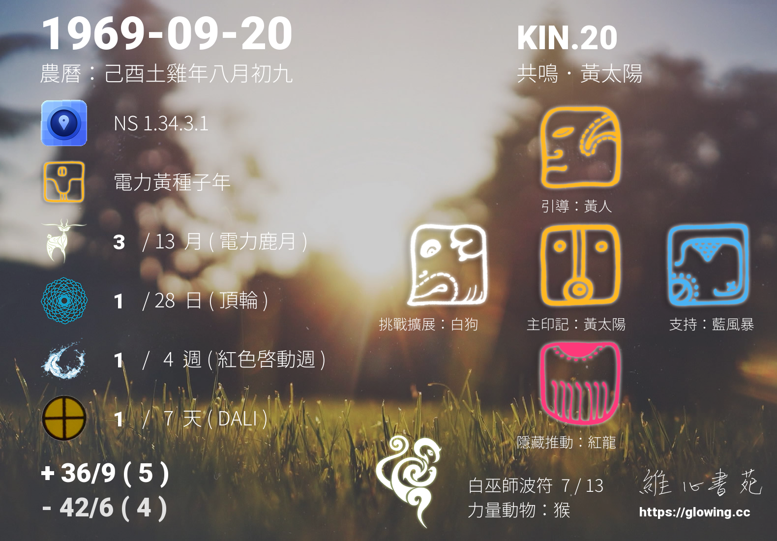 我們可以稱 KIN 20 為 【共鳴黃太陽】 、 【共鳴的黃太陽】 、 【白巫師波符 之 共鳴黃太陽】 也可以是 【共鳴黃太陽.白巫師波符】 ,你比較喜歡哪一個稱號呢?