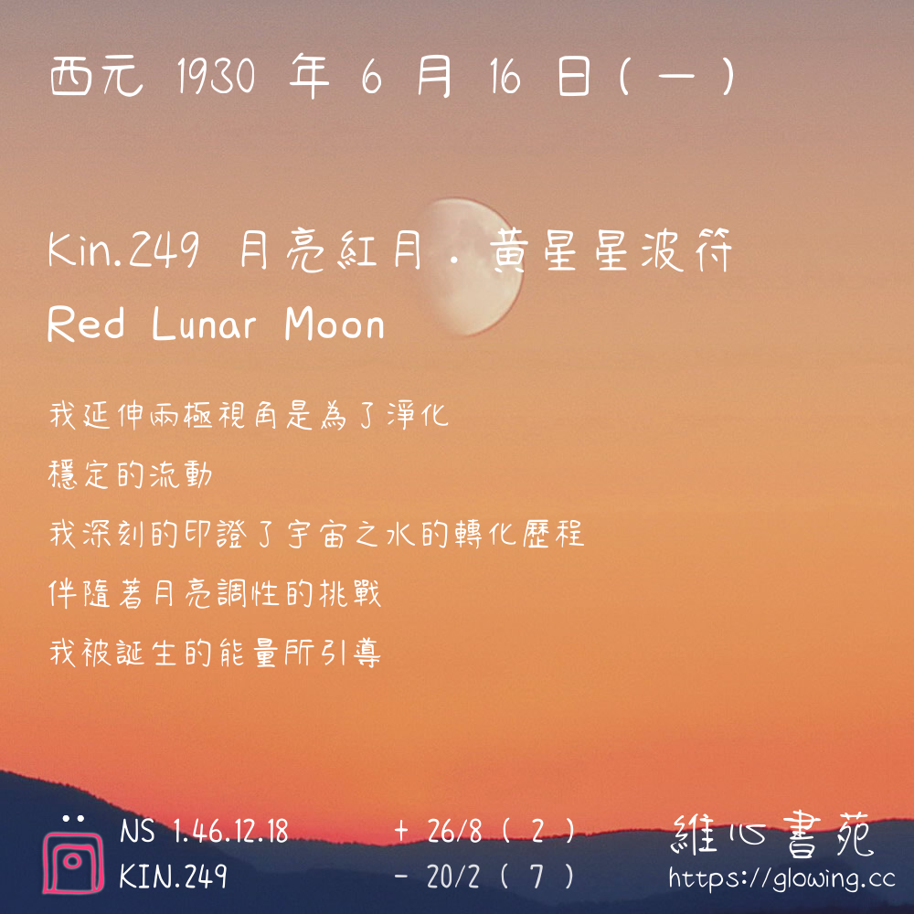 我們可以稱 KIN 249 為 【月亮紅月】 、 【月亮的紅月】 、 【黃星星波符 之 月亮紅月】 也可以是 【月亮紅月.黃星星波符】 ,你比較喜歡哪一個稱號呢?