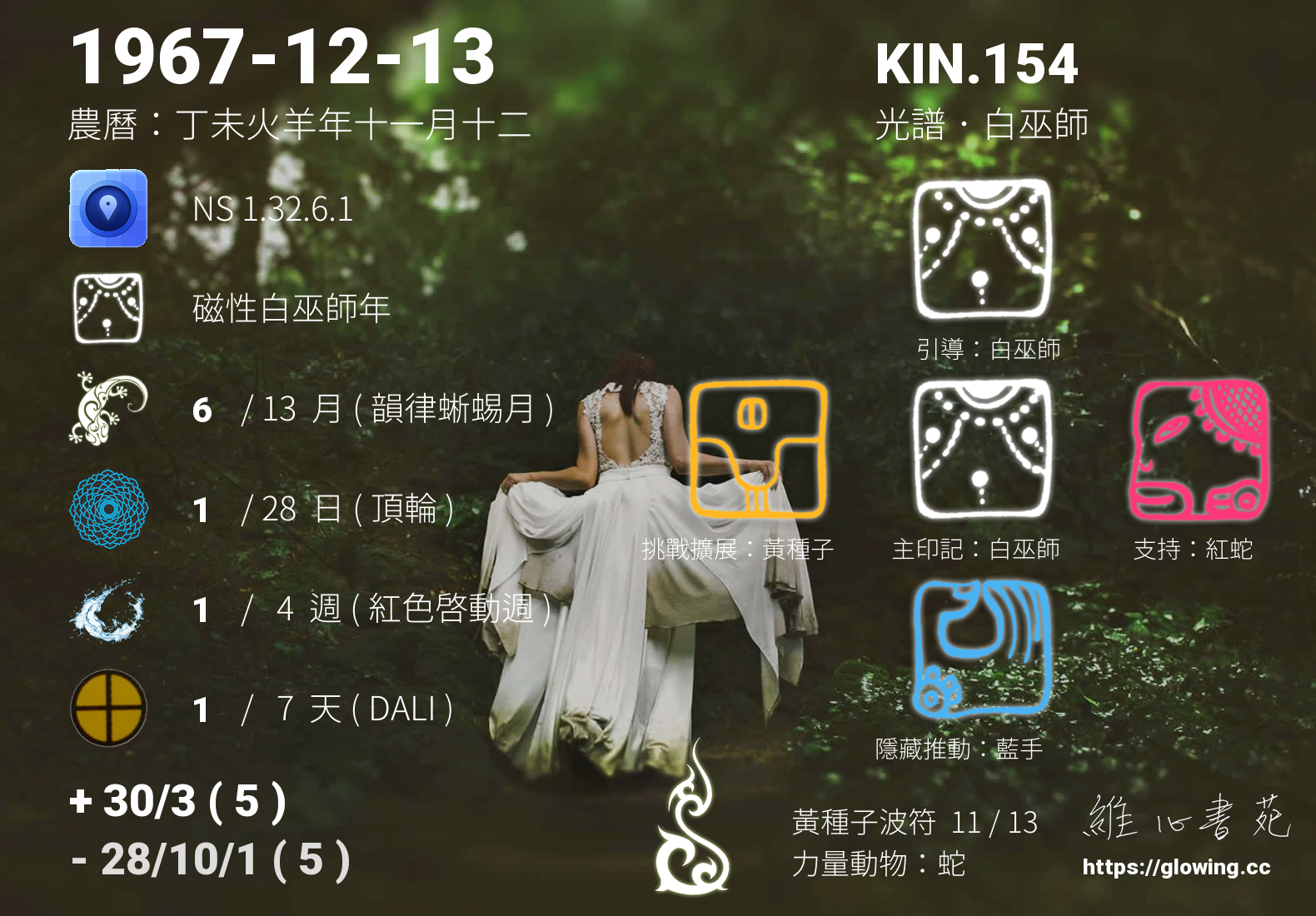 白巫師的引導依據KIN的調性不同會有五種可能性,KIN.154的引導圖騰是白巫師 , 白巫師引導著我們看見自己的不安,因為不安,所以我們尋求解答,因為不安,所以我在現實外,尋找安心的方向與方式。