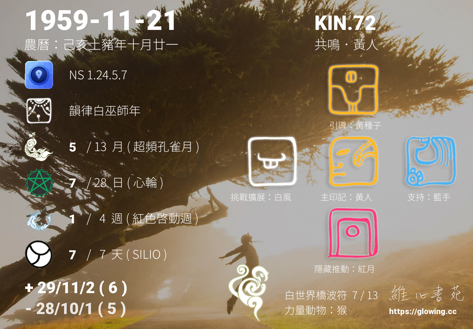 KIN.72 位於 白世界橋波符 13 天中的第 7 天,銀河音階為調性 7