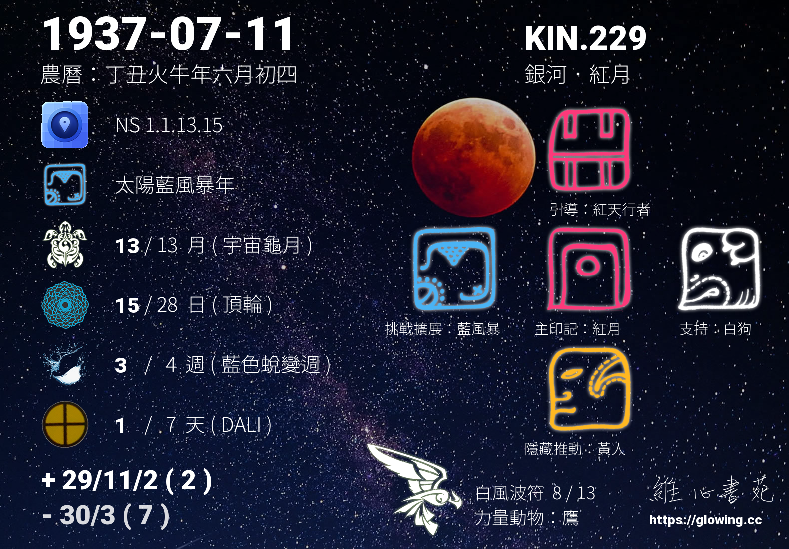 我們可以稱 KIN 229 為 【銀河紅月】 、 【銀河的紅月】 、 【白風波符 之 銀河紅月】 也可以是 【銀河紅月.白風波符】 ,你比較喜歡哪一個稱號呢?