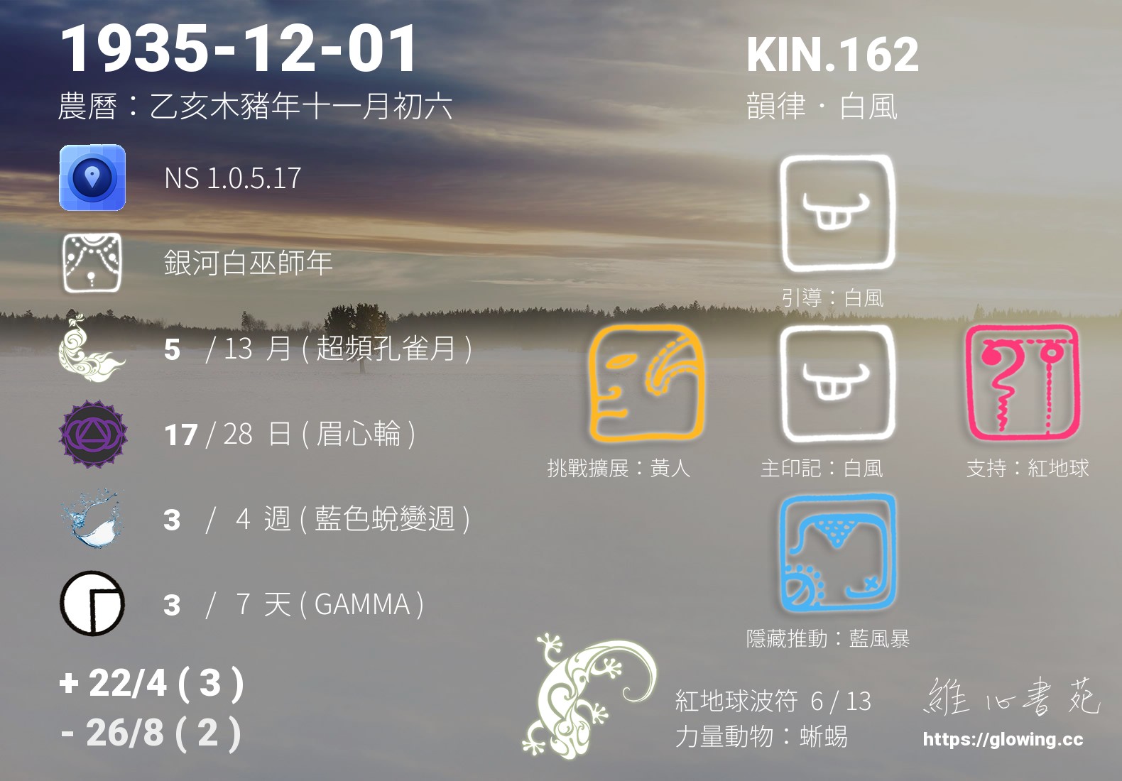 我們可以稱 KIN 162 為 【韻律白風】 、 【韻律的白風】 、 【紅地球波符 之 韻律白風】 也可以是 【韻律白風.紅地球波符】 ,你比較喜歡哪一個稱號呢?