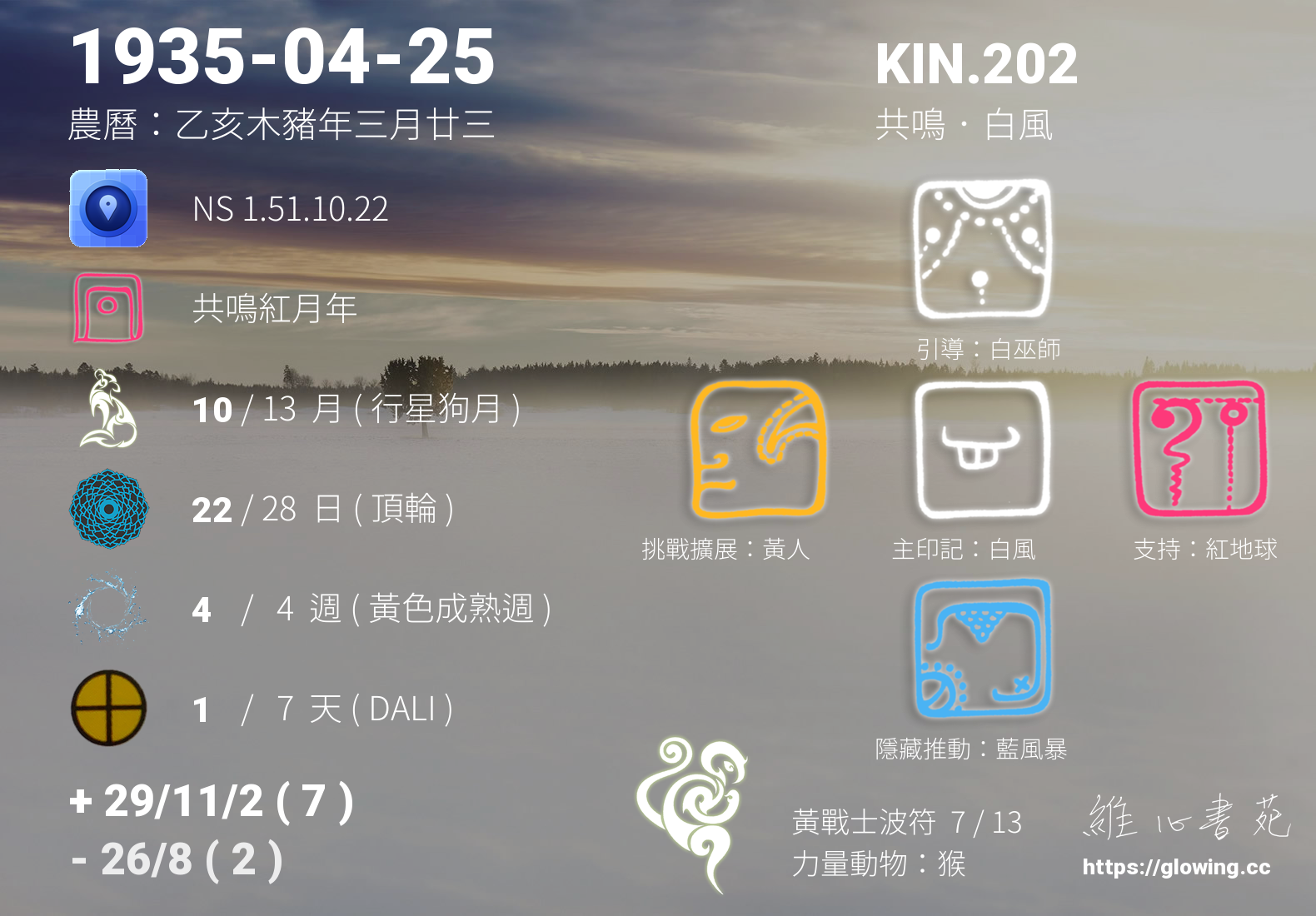 我們可以稱 KIN 202 為 【共鳴白風】 、 【共鳴的白風】 、 【黃戰士波符 之 共鳴白風】 也可以是 【共鳴白風.黃戰士波符】 ,你比較喜歡哪一個稱號呢?