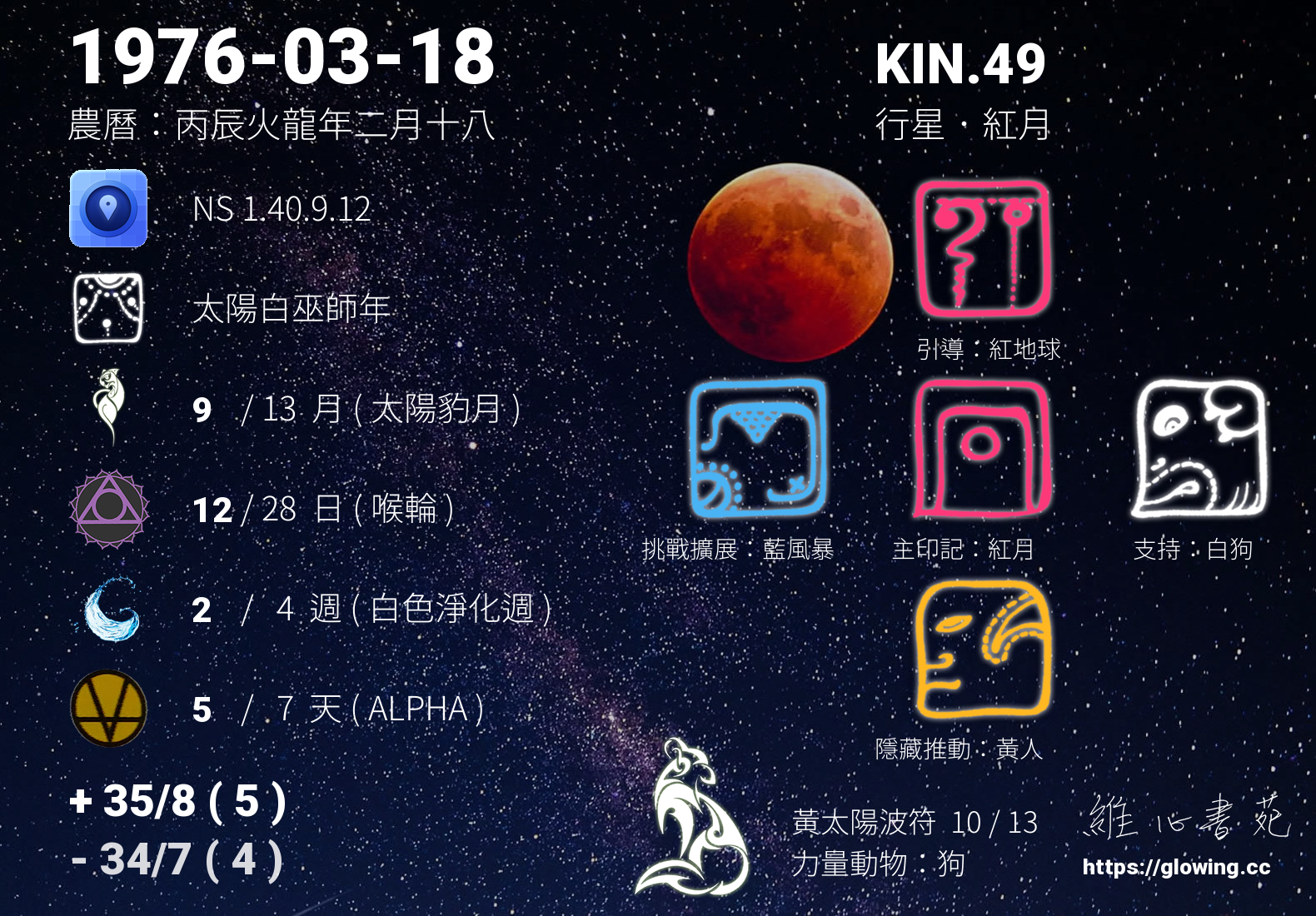 我們可以稱 KIN 49 為 【行星紅月】 、 【行星的紅月】 、 【黃太陽波符 之 行星紅月】 也可以是 【行星紅月.黃太陽波符】 ,你比較喜歡哪一個稱號呢?
